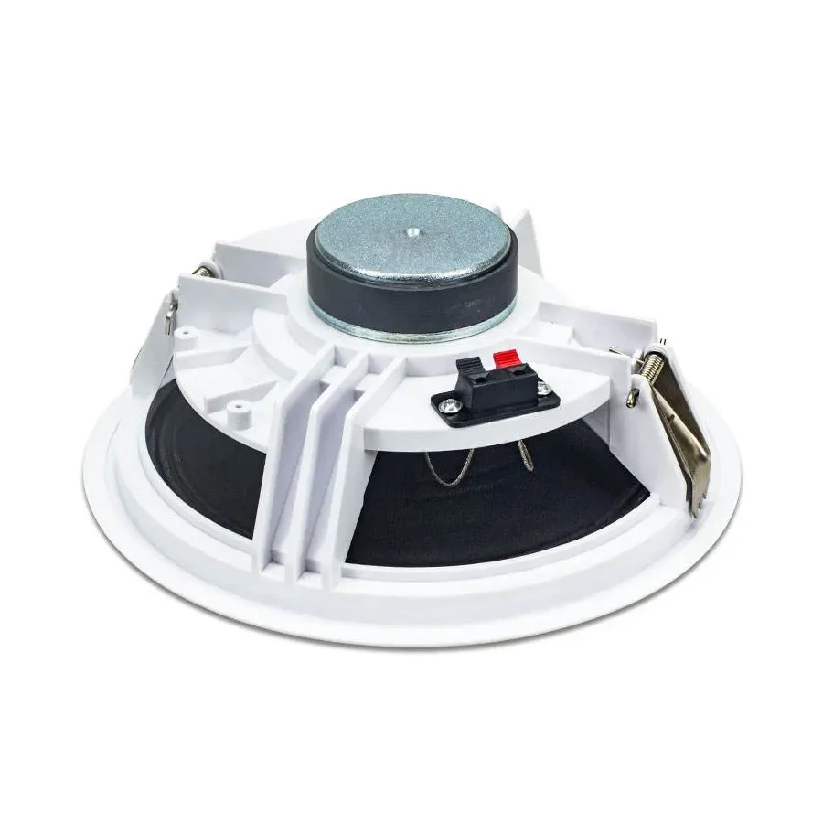 سایز دیافراگم این اسپیکر سقفی 6 اینچ می باشد. همچنین قطر حفره سقف مورد نیاز برای این اسپیکر 17 سانتی متر است. از دیگر ویژگی های این اسپیکر سقفی می توان به بدون فریم بودن (FrameLess) و داشتن توری مگنت، مدار کراس اور (Cross Over) و تیوتر اشاره کرد.